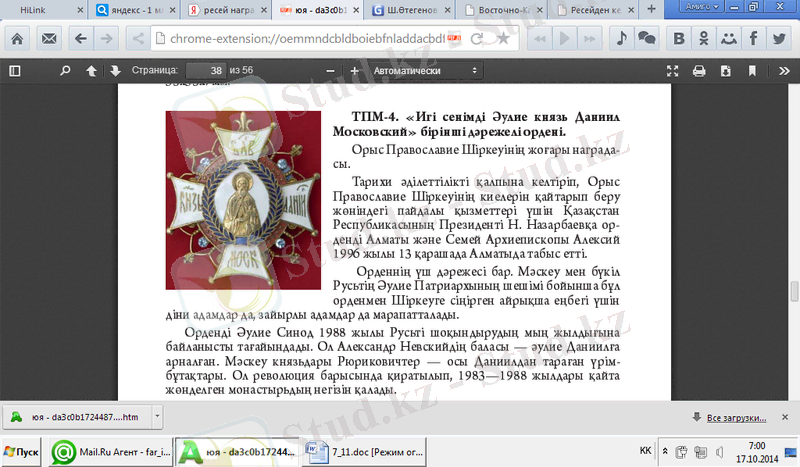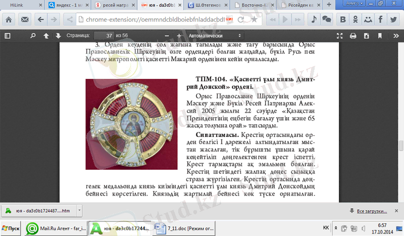 - «Қасиетті ұлы князь Дмит-рий Донской» ордені.