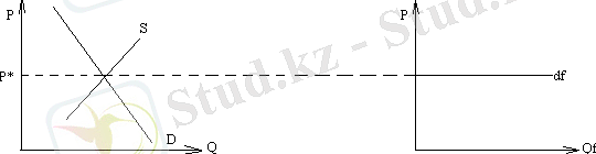 Екіншіден, әр өндіруші тауардың кез-келген санын сата алады және бұл бәсекелес нарықта бағалардың ешқандай өзгерісіне әкелмейді, өйткені өндірушілер саны өте көп және өнім көлемі өте аз деп болжалғандықтан, бұл қойылатын тепе-тең бағаға әсер етпейді. Жетілген бәсекелі фирманың өнімі біркелкі болғандықтан, оның өніміне сұраным абсолютті икемді болады, ал сұраным қисығы абцисса осіне параллель болады (сурет 1) . Көлденең сұраныс қисығы фирма кез-келген өнім көлемін сату арқылы нарықтағы бағаны өзгерте алмайтынын көрсетеді. Нақты басқа жағдаймен біз жетілмеген бәсеке нарығында кездесеміз, мұнда басымдылық ролін монополия, монополиялық бәсеке және олигополия ойнайды.
