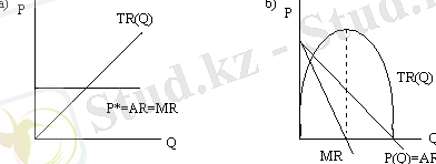Жетілген бәсеке (а) және абсолютті монополия (б) жағдайындағы фирма өніміне сұраныс