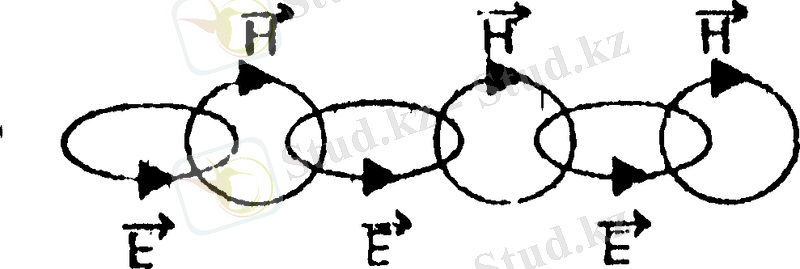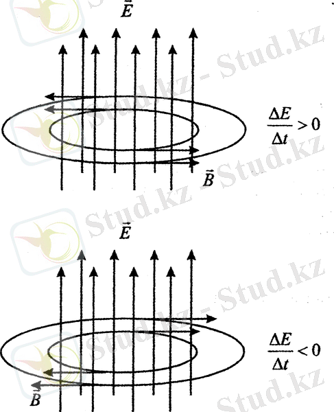 1-суретте өзгеретін электр өрісінің кернеулік Е вектордың бағытын және осы өрістің тудырған құйынды магнит В векторы арасындағы байланыс көрсетілген.