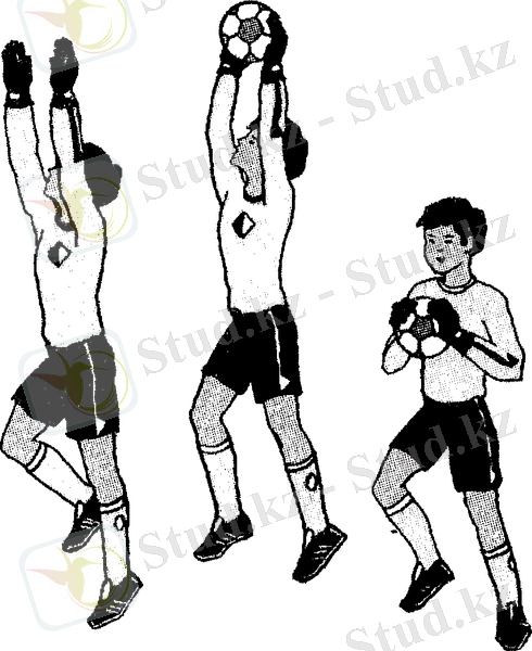 Жогарыдан ұшып келе жатқан допты секіріп барып ұстарда кақпашы секіру-мен бір мезгілде саусақтарын кең жазып, қолын жоғары созады. Доп қолдың сау-сақтарына тиген мезетте ойыншы оны қыса ұстап, кеудесіне қарай тартады.