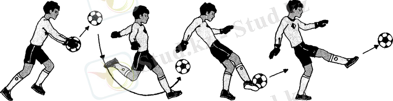 Допты табанның ішкі жагымен согу - барлық согулар-дың ішіндегі нысанага дәл тигізу үшін ең қолайлысы.