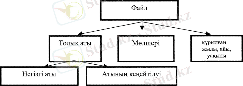 Файл - белгілі бір атпен магниттік дискіде (сыртқы жинақтауыш) немесе компьютердің жедел жадында орналасқан, өңдеу және тасымалдау процестерінде бүтіндей карастыратын мәліметтердің тобы. Файлды анықтайтын ақпараттарға оның аты, ол сақталған орынға дейінгі жол және т. б. жатады.