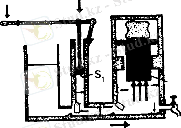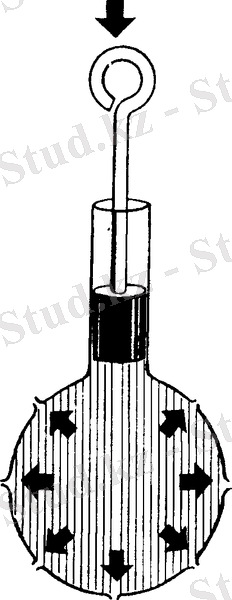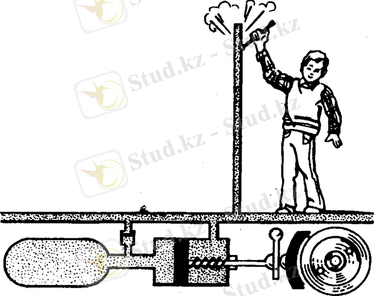 Ол үшін 2- суретте бейнеленген аспапты сумен толтырайық. Поршеньді төмен қарай жылжытып, шардың барлық тесіктерінен су шашырап атқылағанын байқаймыз.