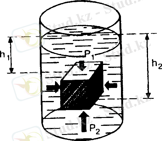 Архимед заңы. Паскаль заңын біле отырып, Архимед заңын теориялық жолмен қорытып шығаруға болады. Тығыздығы р болатын сұйыққа қайсыбір дене бар болсын. Жеңілдік үшін ол дене куб түрінде делік. (8-сурет)