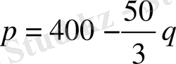Заттың бағасы мен сұраныс арасында түзу сызықты p=kq+b байланыс байқалады. Берілген мәндерді пайдаланып бұл байланысты табу қиын емес: