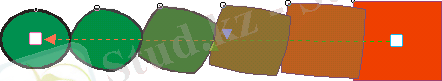 - Искажение режимдерінің ерекшеліктері олардың қайтарылуы. CorelDRAW объектінің барлық искажение параметрлерін есте сақтайды. Сіздер объектіні деформациялайсыздар, содан соң оған келіп искаженияны өзгерте аласыздар. Ол үшін объектіні белгілеп жәнеInteractive Distortion(Интерактивная деформация) аспабын белсенділеп немесеPick(Указатель) аспабымен объекітде екі рет шерту керек.