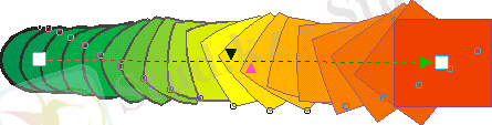 - Clockwise Blend(Переход по часовой) . Аралық сатылар (Промежуточные стадии) түстік дөңгелекте бастапқы және соңғы объектілер арасында орналасқан түстерді қабылдайды (түстердің көшу бағыты - сағат бағыты бойынша) .