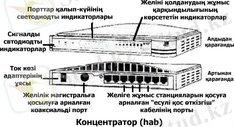 Сонымен қатар, концентратор кабельдерді қосқан кезде конфигурацияларды өзгерту, бұзылуларды табу, орталықтан басқару сияқты амалдарды орындауды жеңілдететін орталық нүктенің рөлін атқарады.