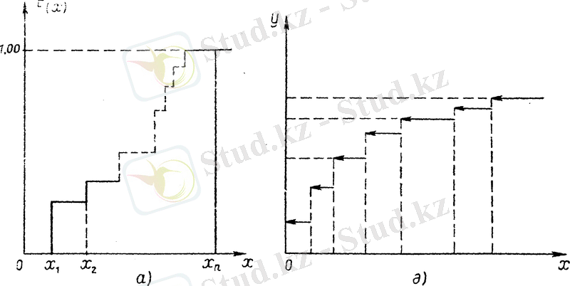 Графикті біртұтас қарастырса, онда үлестіру функциясы баспалдақты, үзілісті болып кездейсоқ шаманың (Х-тің) іргелес жатқан