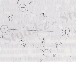 - e 2 /4πε 0 r 1A , - e 2 /4πε 0 r 1B - 1 электронның А және В ядроларымен, - e 2 /4πε 0 r 1A және - e 2 /4πε 0 r 1B - 2-электронның А және В ядроларымен әрекеттесу энергиялары.