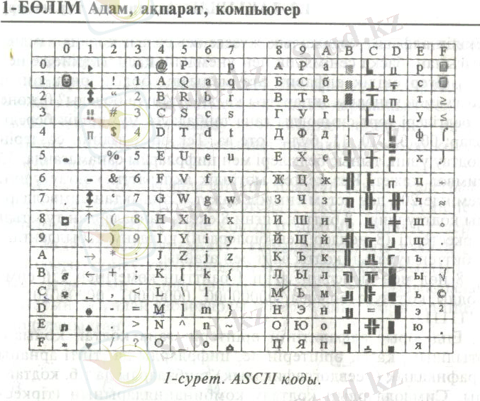 Компьютер - ақпараттық процестерді жүзеге асыратын негізгі құрал. Компьютерде барлық ақпараттар сандар, әріптер, арнайы белгілер т. б. сияқты таңбалардан тұрады да, әрбір таңба компьютер жадында екілік жазылады.