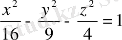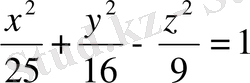 бір қуысты гиперболоидтың жорамал осьтерін, координаталар жазықтықтарындағы қималарын, төбелерін, нақты және жорамал жарты осьтерін табыңыз. (Жауабы: Oz-жорамал осі,