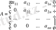 Квадрат матрицаның негізгі диагоналінің астындағы немесе үстіндегі элементтері нолге тең болса, матрица үшбұрышты матрица деп аталады,