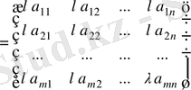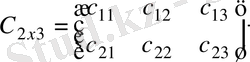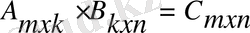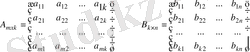 3. Матрицаларды көбейту. Бірінші матрицаның тік жолдар саны мен екінші матрицаның жатық жолдар саны тең болған жағдайда ғана екі матрицаны көбейтуге болады. Өлшемі m x k болатын А матрицасы мен өлшемі k x n болатын В матриасы берілсін: