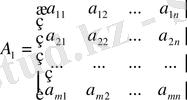Анықтама. m жатық n тік жолдан құрылған кестені mxn өлшемді матрица деп атайды.