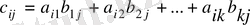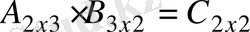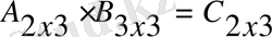Осы екі матрицаны көбейткенде өлшемі m x n болатын көбейтінді С матрица аламыз: