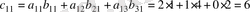 яғни А матрицаның 1-жатық жол элементтерін В матрицаның 1-тік жолының сәйкес элементтеріне көбейтіп қостық. Осылай С матрицаның барлық элементтері табылады: