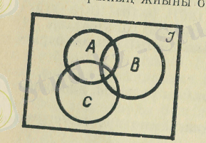 болады. Универсал I жиынын тік төрт бұрыш түрінде, ал оның ішкі жиындарын - осы тік төрт бұрыштың ішіндегі дөңгелектер түрінде кескіндеуді келісейік. Онда біздің қарастырып отырған I, А, В, С жиындарын графмкалық түрінде мынадай етіп кескіндеуге болады.