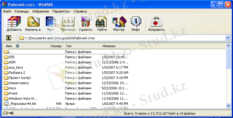 WinZip, WinRar мұрағаттарымен практикалық жұмыс істеу