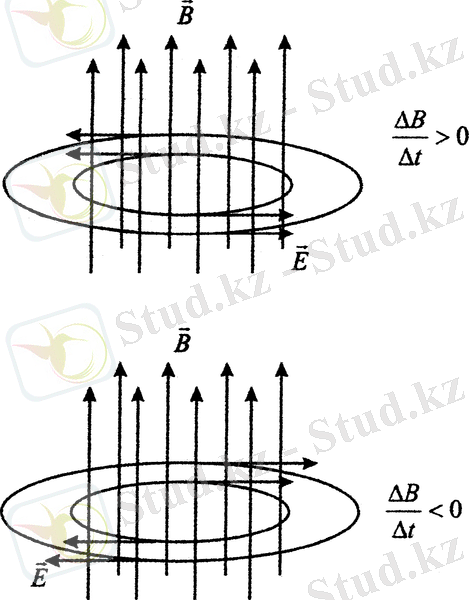 2-суретте өзгеретін магнит өрісінің В индукция векторының бағыты және осы өрістің тудырған құйынды электр өрісінің Е векторымен байланысы көрсетілген.