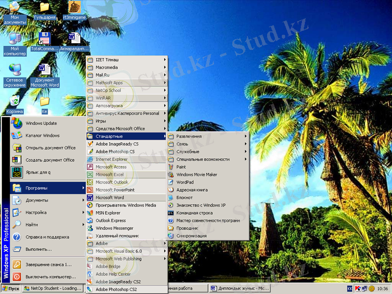 бағдарламасы және басқа да қосымшалар жатады. Бұл бағдарлама бірдей алгоритммен жүзеге асырылады: Бастау мәзірі (Пуск) - Бағдарламалар (Программы) - Стандартты тізімінен өзіңізге қажетті бағдарламаны таңдайсыз.