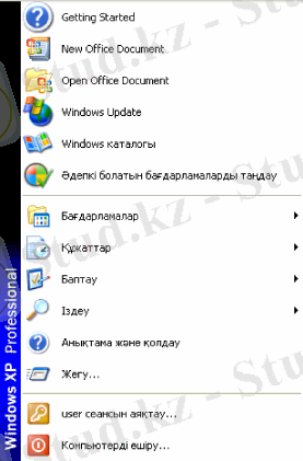 Бастау (Пуск) батырмасын басқаннан кейін бағдарламаларды іске қосуға, құжатты ашуға, жүйе баптамаларын өзгертуге, анықтамалық мәлімет алуға, қажетті файлдарды табуға және т. б
