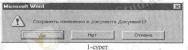 Егер программамен жұмысты аяқтау барысында мұның алдында өзгертіп, бірақ дискіге жазылмаған құжат бар болса, онда редактор экранға қосымша сұхбаттасу терезесін шығарып, өзгертілген құжатты дискіге жазу (Иә-Да)