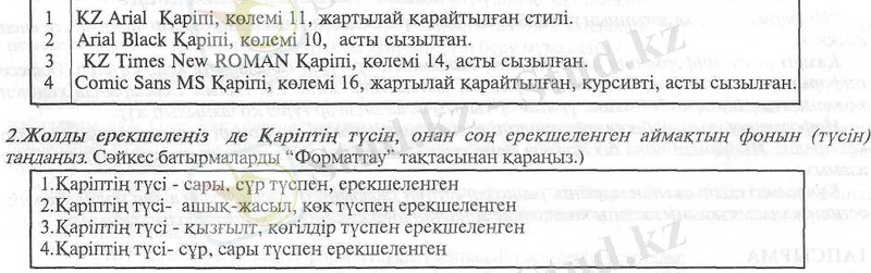 - Түс (Цвет текста) - өрісінде символдарды бояйтын түстер көрсетіледі.