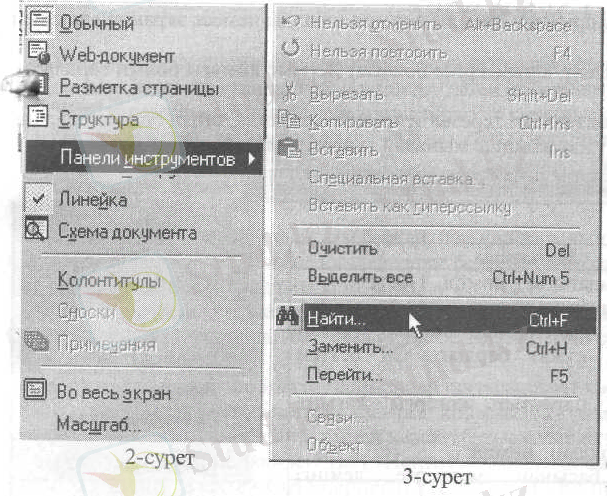 (Найти) командасын орындау үшін Ctrl+F пернелік комбинацияларын басуға да болады (3-сурет) .