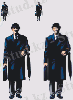 Суреттегі ер адамның галустігін өзгерту еш қиындық туғызбайды оны тек қана бұрыштардың мәндерін өзертсе болды. Векторлық файлдардың көлемі пикселдік кескіндердің көлемінен әлдеқайда аз болады.