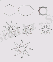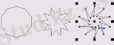 Көпбұрышты салу үшін құралдар тақтасынан Polygon (Многоугольник) құралын таңдаймыз. Атрибуттар тақтасындағы дөңес көпбұрышты таңдап, түйіндер санын анықтап, тіктөртбұрыштың диагоналдары бойынша созу арқылы көпбұрышты саламыз. Егер Ctrl пернесін жібермей тышқан батырмасымен қатар бассақ, онда теңқабырғалы көпбұрыш пайда болады. Егер Shape (Форма) құралын таңдасақ, онда оның көрсеткішін көпбұрыш қабырғаларының ортасында орналасқан түйіндердің кез келгеніне апарып қою керек. Ctrl пернесін жібермей, центрге дейінгі қашықтықтың жартысына радиусы бойынша түйінді орналастырса, онда көпбұрыштың қабырғаларының ортасында орналасқан «қамтылған» түйіндермен орналастырылатын болады. нәтижесінде жұлдыз пайда болады (2. 8. -суреттің ортасында) .