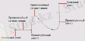 CorelDRAW графикалық ортасында кез келген қисық сызық сегменттер мен түйіндерден құралады. Ал қисық сызықтармен орындалатын амалдар ол ортада да орындалады. Түйін сегментке қатысты сипатты анықтайды. Сондықтан тұйықталмаған сызықтар үшін түйіндердің бірі - бастапқы, ал тұйықталған сызықтар - сызықтар бағыттары екендігін білу маңызды (сағат тілінің бойымен немесе сағат тіліне қарсы) . Түйін үш типке бөлінеді: тұйықталмаған қисық сызықтар үшін бастапқы түйін, тік сызықты (line) және қисық сызықты (curve) түйіндер .