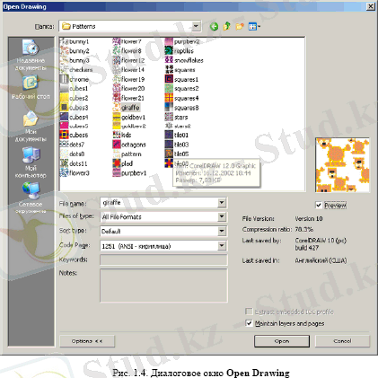 1. 4. - сурет. Диалогтық терезе Open Drawing