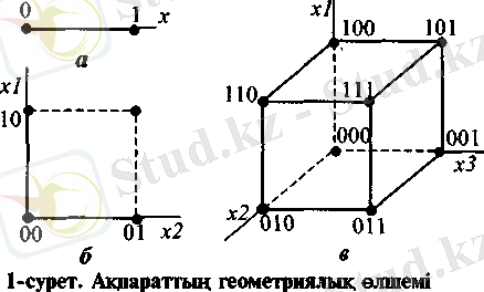 Геометриялық өлшем дискреттік бірлікпен ақпараттық хабардың геометриялық моделінің параметрін (ұзындығын, ауданын, көлемін және т. т. ) өлшеуді қарастырады. Мысалы, ұзындығы бірге тең сызық, квадрат (2. 1, ә - екіразрадты сөз) немесе куб (2. 1, б - үшразрядты сөз) ақпараттың геометриялық моделі бола алады. Берілген құрылымдардағы мүмкін болатын ақпараттың ең үлкен мөлшері барлық өлшемдері бойынша дискретгі мәндердің қосындысы ретінде модельдің ақпаратық сиымдылығын анықтайды.