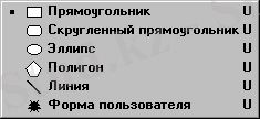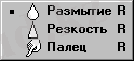 Программа терезесiнде батырмалар емес, жылжымалы палитралар қолданылады.