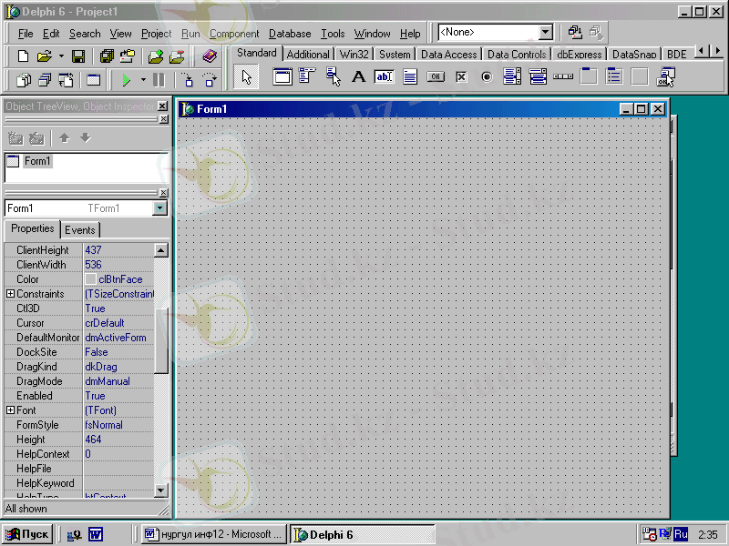 1. 2-сурет. Delphi -дің негізгі терезесі