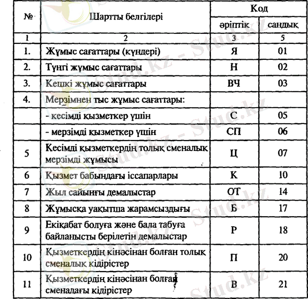 - жұмыс уақытының жиынтық (жалпы) есебін жүргізетін өндірістер, цехтар, учаскелердің тізімі.
