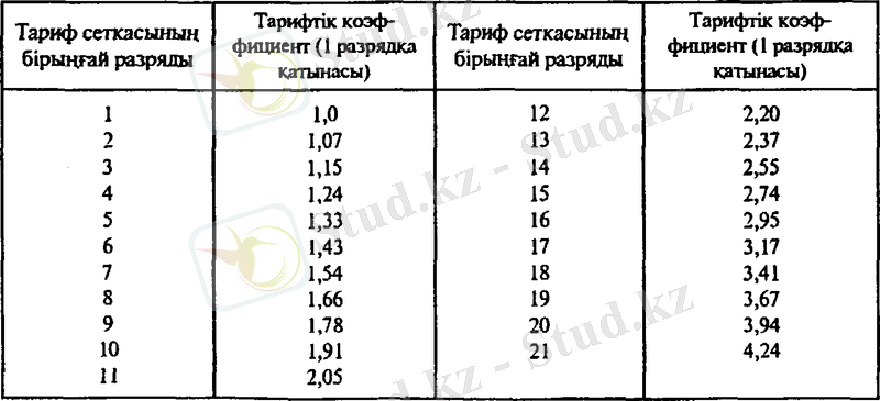 Тариф мөлшерлемесін және бюджет сферасындағы еңбеккерлердің қызмет иесінің (лауазымды адамның) айлығын белгілеген кезде жалақының минималды деңгейін және бірыңғай тариф сеткасын пайдаланады. Бірыңғай тариф сеткасы еңбек ақының 21 разрядынын, негізінде құрьшады және әрбір разряд үшін өзіндік тариф коэффициенті белгіленеді.