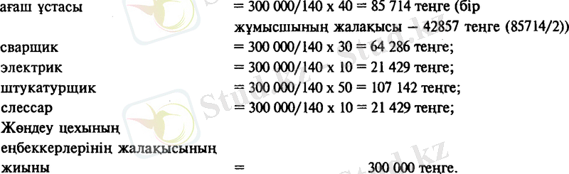 Атқарған жұмысы үшін еңбеккерлердің жалақысы мынаны құрайды:
