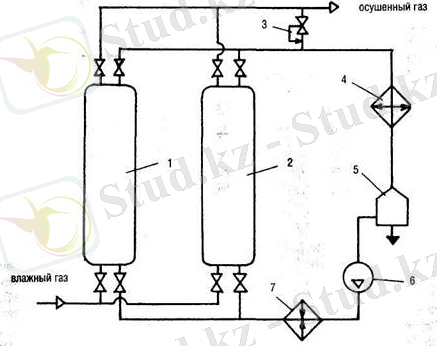 1. 6. Адсорбциялық әдіспен газды кептіруге арналған қондырғының мысалы