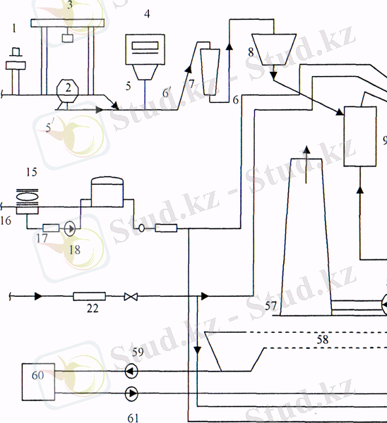 Екібастұз көмірі РЖЭО-ға арнайы жартывагондармен жеткізіледі, олар таразымен өлшеніп көмір қоймасының жүк түсіру эстакадасына жіберіледі. Принциптік сүлбесі 1-1 суретте көрсетілген.
