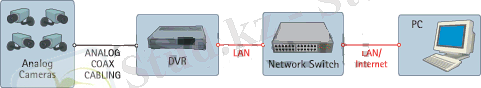 Сурет 1. 2- Сандық бейнерекордермен байланысқан аналогты CCTV-жүйесі