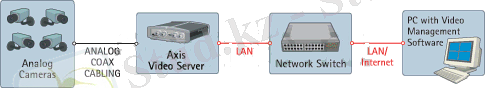 Аналогтық камералар бейнеақпаратты сығатын және сандықтайтын бейнесерверге қосылады. Содан кейін бейнесервер желіге қосылып, бейнеақпаратты желілік свич арқылы компьбтерге жібереді. Ал ақпарат компьютердің қатқыл дискісінде сақталынады. Бұл нағыз желілік бейнежүйе.