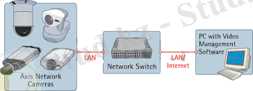 1. 5-сурет нағыз желілік бейнежүйені суреттеп береді, онда яғни ең бастысы желілік камералар арқылы ІР-желі көмегімен бейнеақпараттық берілуі жақсы бейнеленген. Бұл жүйе толығымен сандық мүмкіндіктерді ашып, көрсетілім болып жатқан жеріне қарамастан, суреттеменің сапалы екендігін айқындайды.