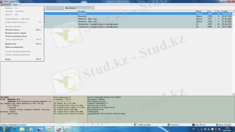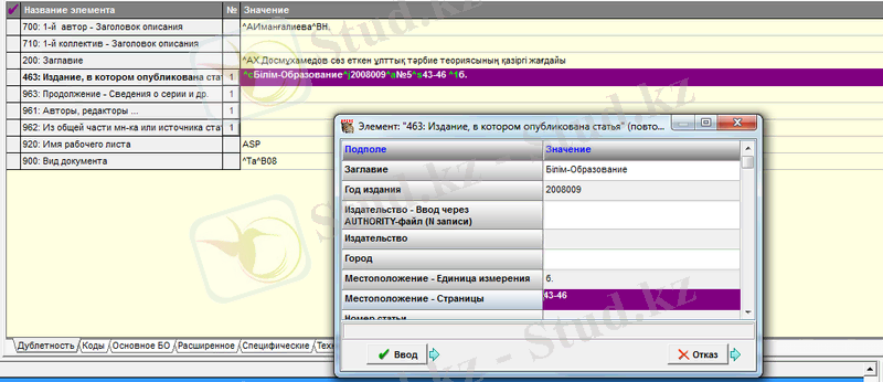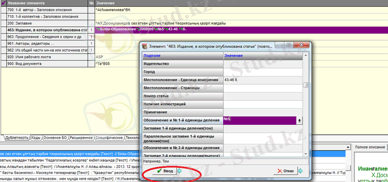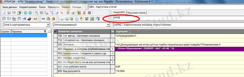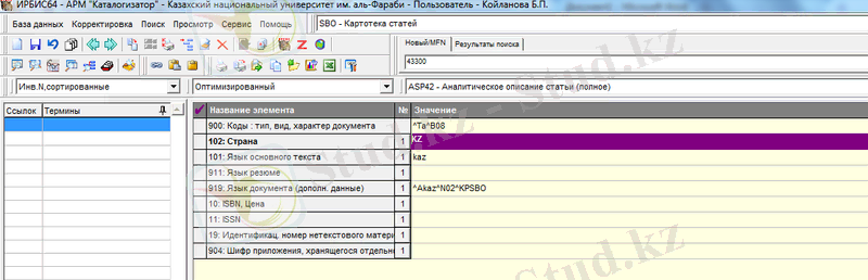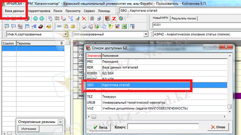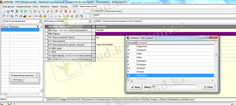 2. 2 Ирбис бағдарламасымен жұмыс істеу барысы