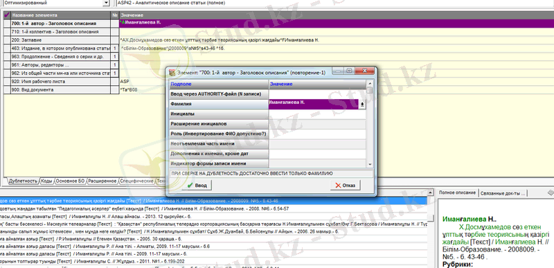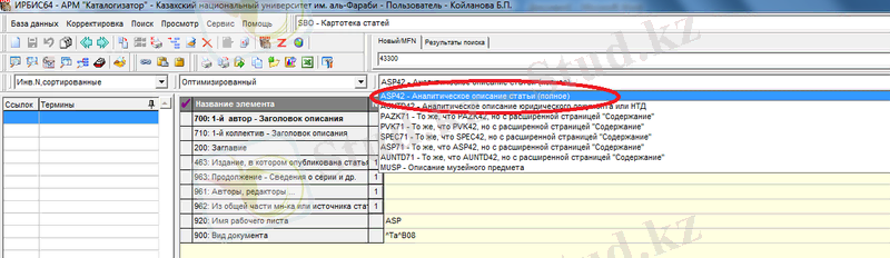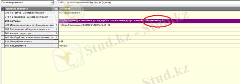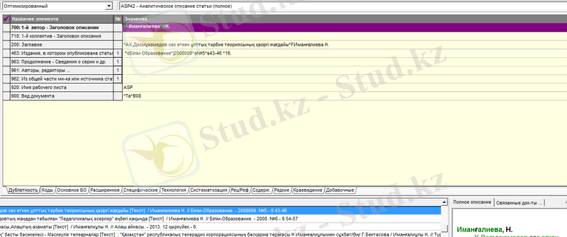 Тізімдердің ішінен ASP42 -Аналогическое описание статьи(полное) таңдаймыз.