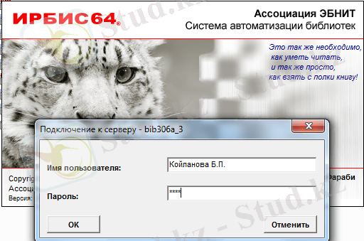 Ирбис программасында жұмыс жасау үшін жетекшіміз бізге әрқайсысымызға жеке логин мен пароль бөліп берді. Сол логин мен пароль арқылы Ирбистегі Кабистен көшірілген ақпараттардың қателерімен жұмыс жасадық.
