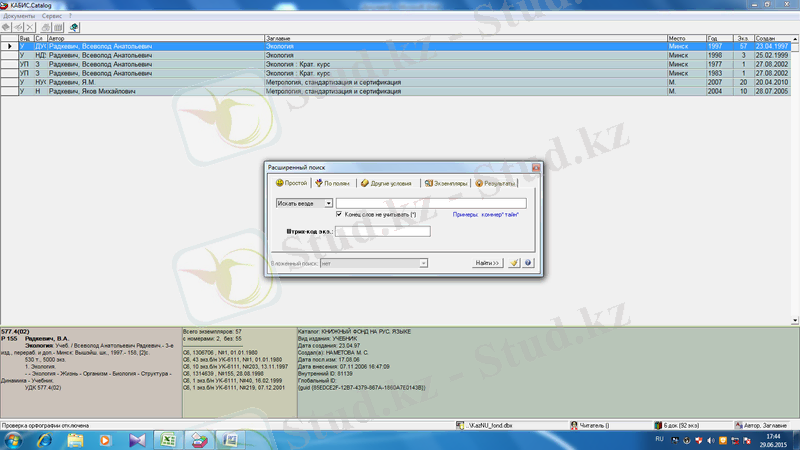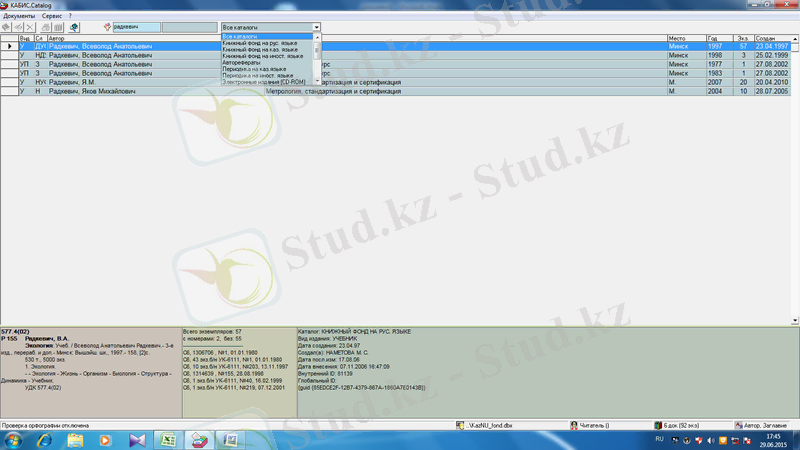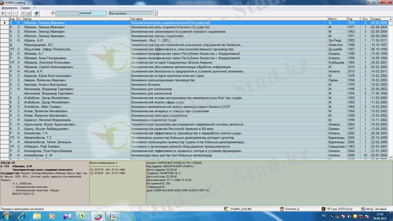 Көріп тұрғандарыңыздай мұнда әр түрлі бағыттағы кітаптар жеке-жеке сақталады. Суретте авторы бойынша іздеу көрсетілген.