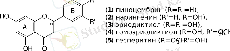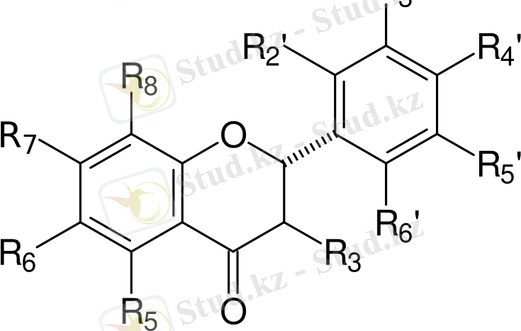 Флаванондар құрамында бір асимметриялы көміртек атомы (С 2 ) бар және сәйкесінше екі изомерлер және рацемат ретінде кездеседі.